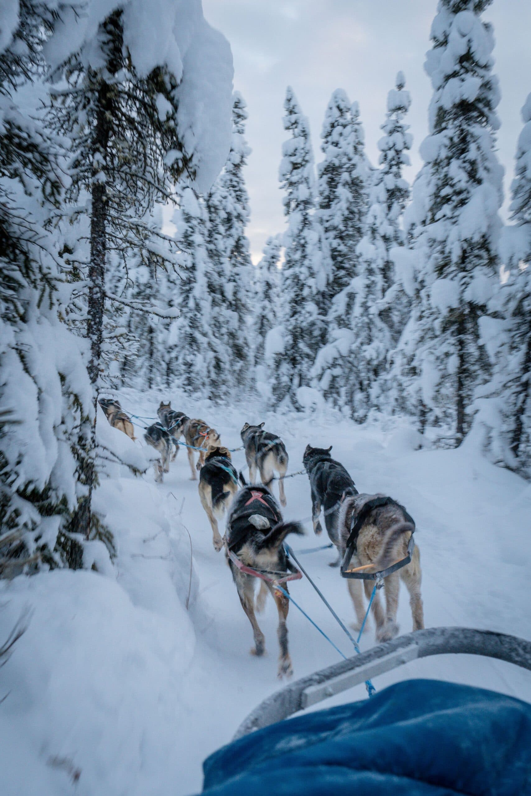 The dogs explode with excitement at the start, their eager barks echoing across the trail. Then, once the sled begins to glide, the noise fades and the only sounds left are the runners sliding across snow and the rhythmic breathing of the dogs.