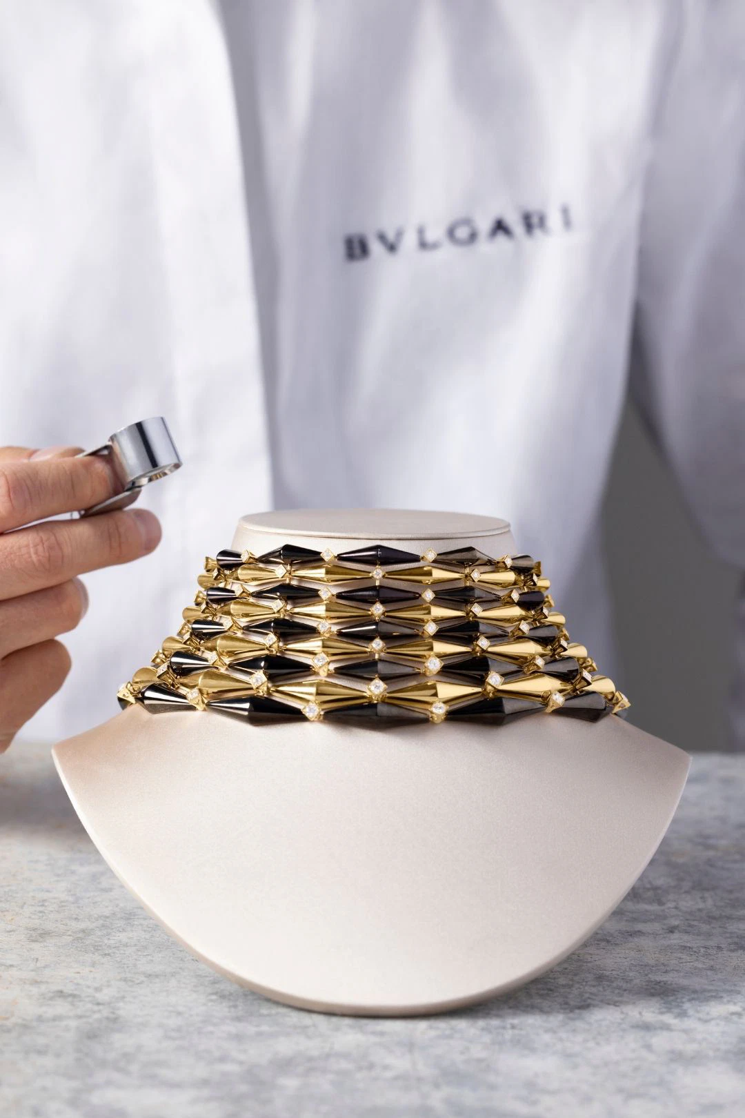 Here, the maison introduces Diamond-Like Carbon (DLC), an ultra-hard, friction-resistant coating rarely seen in fine jewellery. In Bvlgari’s hands, the material becomes expressive rather than industrial: a deep, velvety black that intensifies the glow of yellow gold and the brilliance of diamonds.